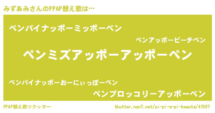 | ピコ太郎風あだ名 | 『ミズ太郎』『ピコミ郎』『ミコ十郎』 |