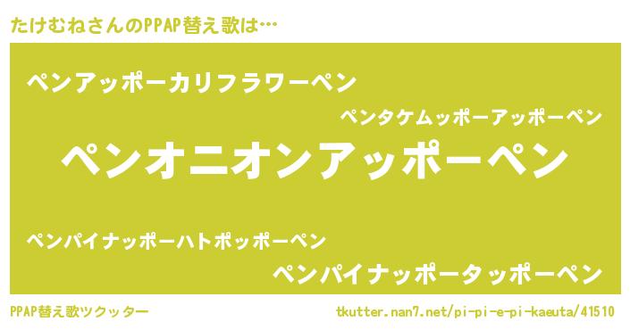| 意味不明あだ名 | 『ペロリンたけむね』『自称たけむね』 |