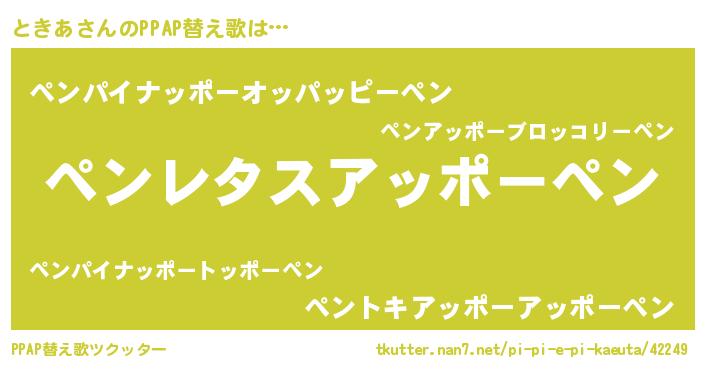 | 男性向けラノベタイトル風あだ名 | 『この素晴らしい世界にときあを!』 |
