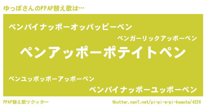 | 欧米人風あだ名 | 『ダレノガレゆっぽ』『ゆっぽクリステル』 |