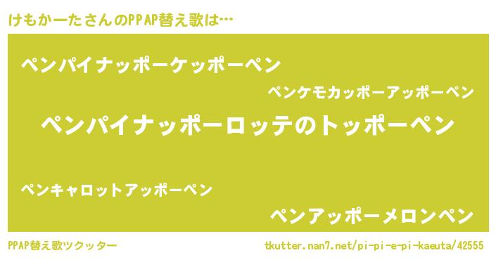 | 男性向けラノベタイトル風あだ名 | 『けもかーた~年齢イコール彼女いない歴の魔法使い~』 |