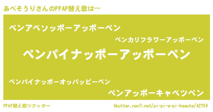 | 意味不明あだ名 | 『永久保存あべそうり』『自称あべそうり』 |