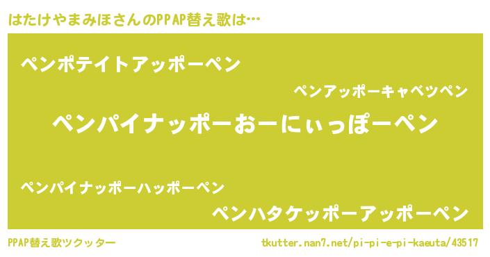 | ピコ太郎風あだ名 | 『ハハ太郎』『ハコ四郎』『ハタ太郎』 |