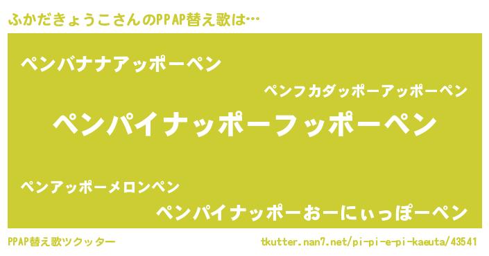 | ヘコむあだ名 | 『ふかだきょうこ(苦笑)』『ふかにー』 |