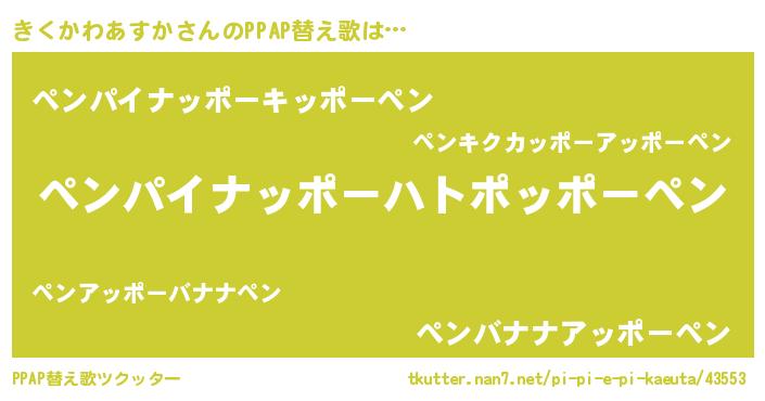 | 男性向けラノベタイトル風あだ名 | 『この素晴らしい世界にきくかわあすかを!』 |