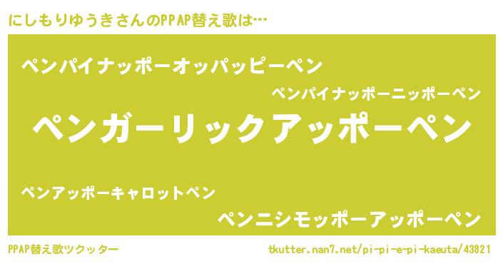 | 意味不明あだ名 | 『自称にしもりゆうき』 |