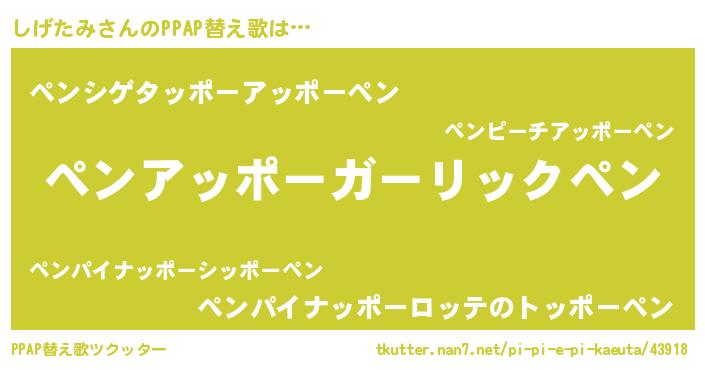 | ピコ太郎風あだ名 | 『ピシ十郎』『シゲ八郎』『シシ太郎』 |