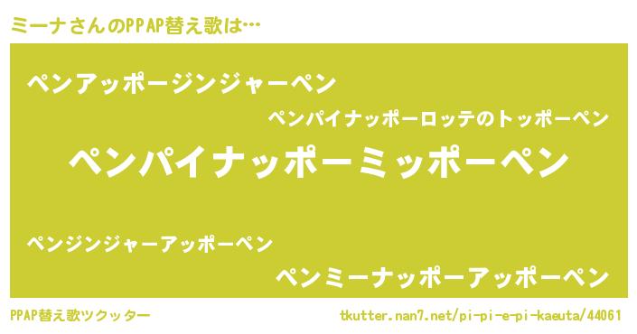 | 意味不明あだ名 | 『永久保存ミーナ』『ヨモギ科ミーナ属』 |