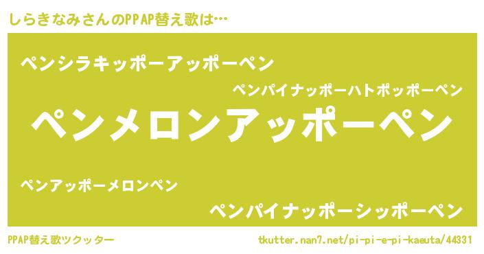 | 意味不明あだ名 | 『ペロリンしらきなみ』『自称しらきなみ』 |