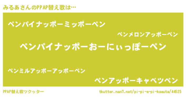 | 意味不明あだ名 | 『眠気覚ましガムみるあ味』『自称みるあ』 |