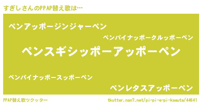 | ピコ太郎風あだ名 | 『スギ四郎』『ピス三郎』『スコ史郎』 |