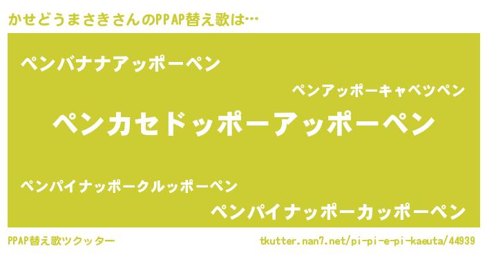 | 胡散臭い通販商品みたいなあだ名 | 『信頼と実績のサプリメント…その名も「かせどうまさき」』 |