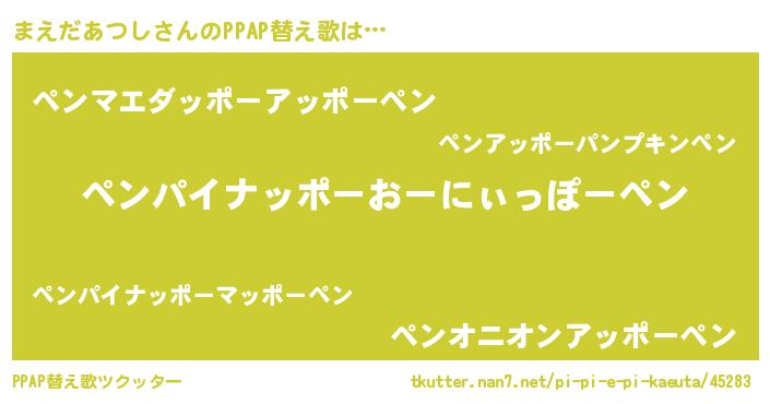 | 男性向けラノベタイトル風あだ名 | 『おまえをオタクにしてやるから、俺をまえだあつしにしてくれ! 』 |