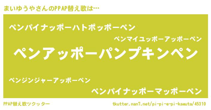 | 欧米人風あだ名 | 『まいゆうや・ステッグマイヤー』 |