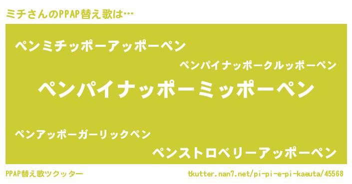 | ピコ太郎風あだ名 | 『ピコミ郎』『ミチ五郎』『ミコ八郎』 |