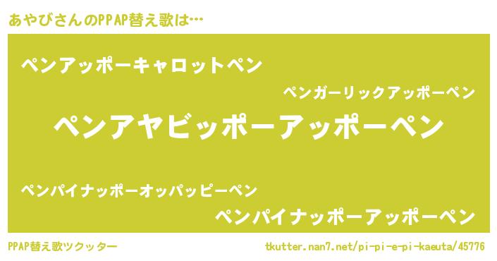 | ピコ太郎風あだ名 | 『アヤ二郎』『ピア八郎』『ピコア郎』 |