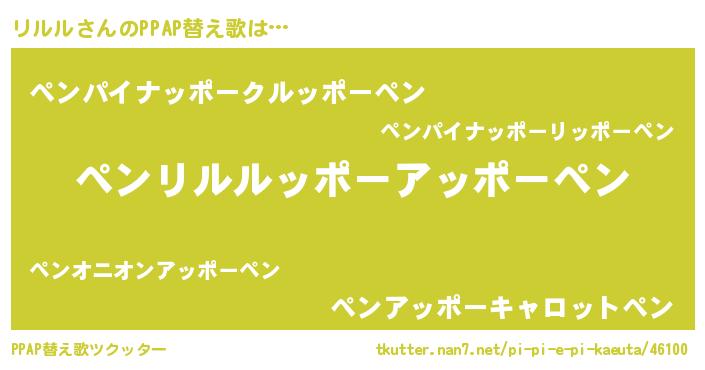 | ピコ太郎風あだ名 | 『リル三郎』『リリ太郎』『ピリ一郎』 |