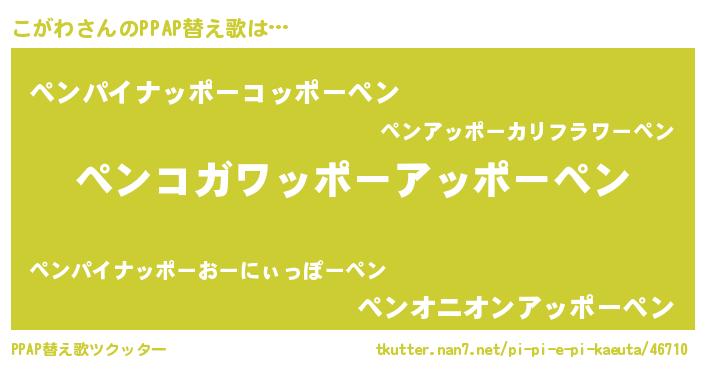 | 欧米人風あだ名 | 『ウサインこがわ』『ダルビッシュこがわ』 |