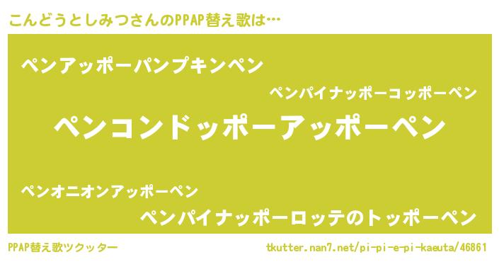 | 胡散臭い通販商品みたいなあだ名 | 『信頼と実績のサプリメント…その名も「こんどうとしみつ」』 |