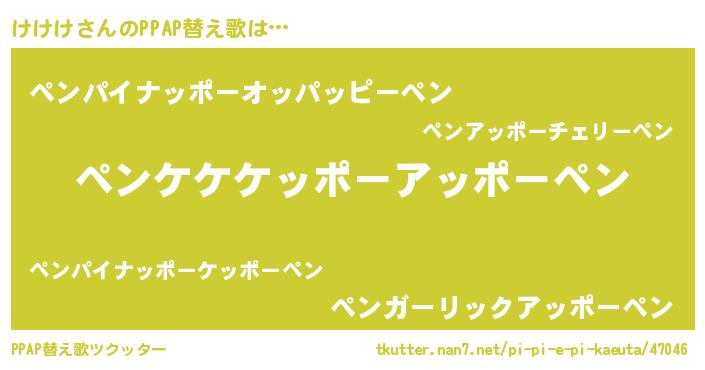 | ヒーロー風カッコイイあだ名 | 『炎刃騎士ケケ』『正義の使者けけけ』 |