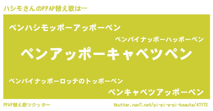 | 意味不明あだ名 | 『なめこ科ハシモ属』『自称ハシモ』 |