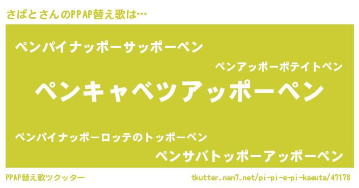 | 男性向けラノベタイトル風あだ名 | 『転生したらさばとだった件』 |