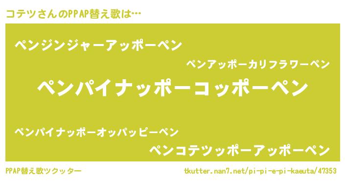 | ピコ太郎風あだ名 | 『ピココ郎』『ココ五郎』『コテ二郎』 |