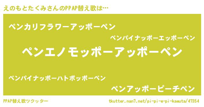 | 意味不明あだ名 | 『とにかく怪しいえのもとたくみ』 |