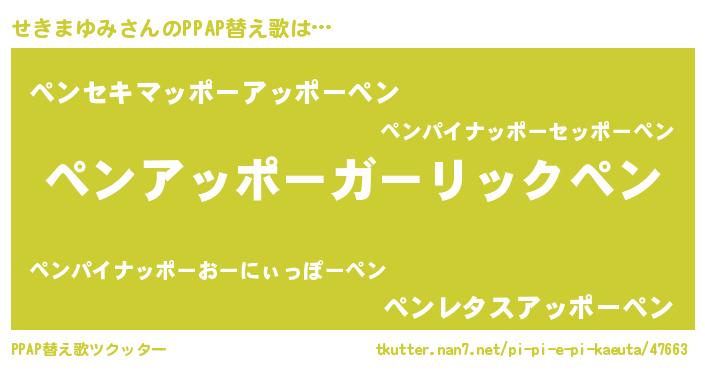| 肩書あだ名 | 『せきまゆみ教官』『せきまゆみ国家主席』 |