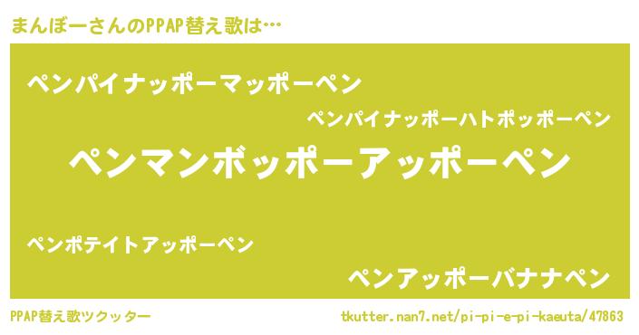 | 意味不明あだ名 | 『自称まんぼー』『永久保存まんぼー』 |