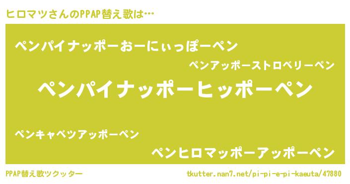 | ピコ太郎風あだ名 | 『ピコヒ郎』『ヒヒ太郎』『ヒロ八郎』 |