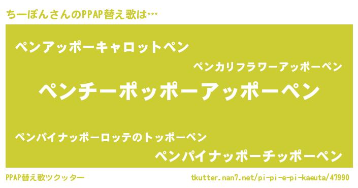 | 女子向けラノベタイトル風あだ名 | 『ちーぽんの卵を拾いまして』 |