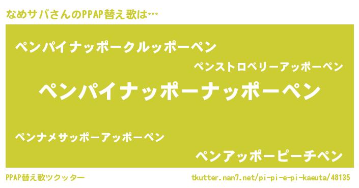 | ヒーロー風カッコイイあだ名 | 『ネオナメサバ』『正義の使者なめサバ』 |