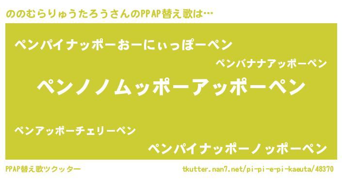 | 男性向けラノベタイトル風あだ名 | 『ダンジョンにののむらりゅうたろうを求めるのは間違っているだろうか』 |