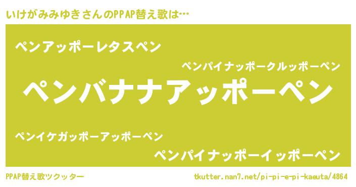 | 胡散臭い通販商品みたいなあだ名 | 『必ず成功するブレスレット…その名も「いけがみみゆき」』 |