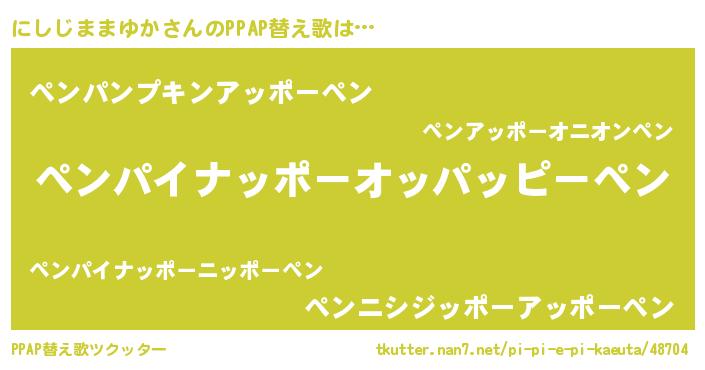| ピコ太郎風あだ名 | 『ニニ太郎』『ニコ一郎』『ニシ二郎』 |