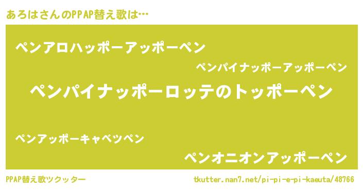 | ピコ太郎風あだ名 | 『アア太郎』『アロ六郎』『アコ六郎』 |