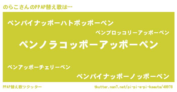| ピコ太郎風あだ名 | 『ノラ四郎』『ノノ太郎』『ピコノ郎』 |