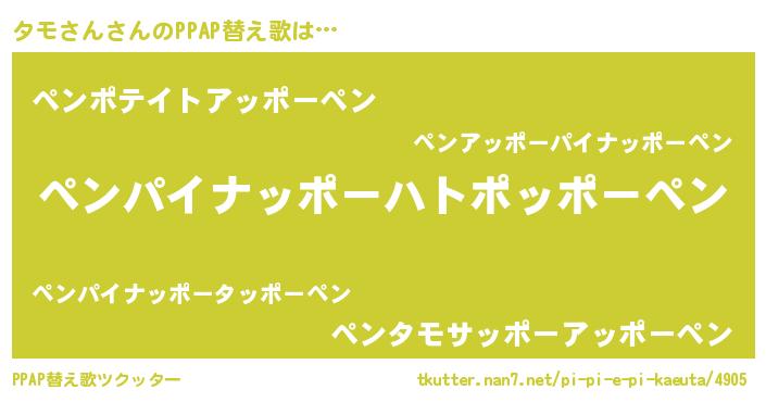 | ピコ太郎風あだ名 | 『タタ太郎』『タコ四郎』『タモ二郎』 |