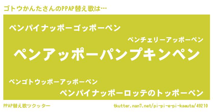 | 欧米人風あだ名 | 『ゴトウかんた・ステッグマイヤー』 |