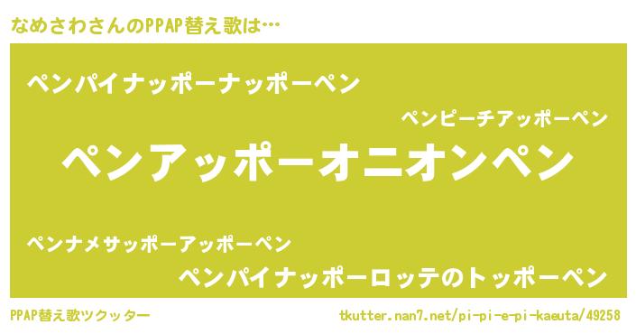 | 意味不明あだ名 | 『自称なめさわ』『なめさわフォーエバー』 |