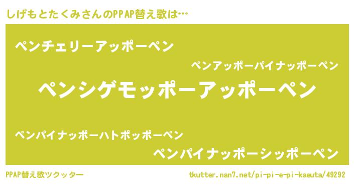 | ピコ太郎風あだ名 | 『シゲ一郎』『シコ三郎』『ピコシ郎』 |