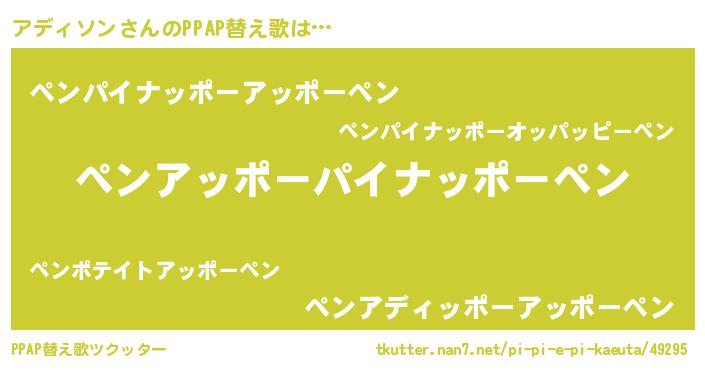 | 意味不明あだ名 | 『自称アディソン』『永久保存アディソン』 |