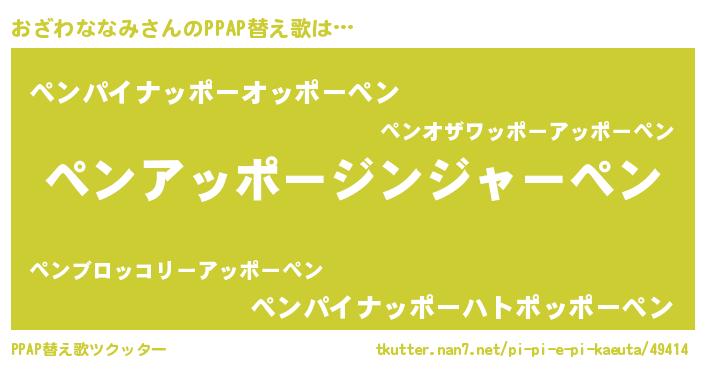 | 欧米人風あだ名 | 『アンジェラ・おざわななみ』 |