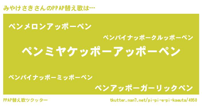 | ピコ太郎風あだ名 | 『ミヤ五郎』『ミコ二郎』『ピミ一郎』 |