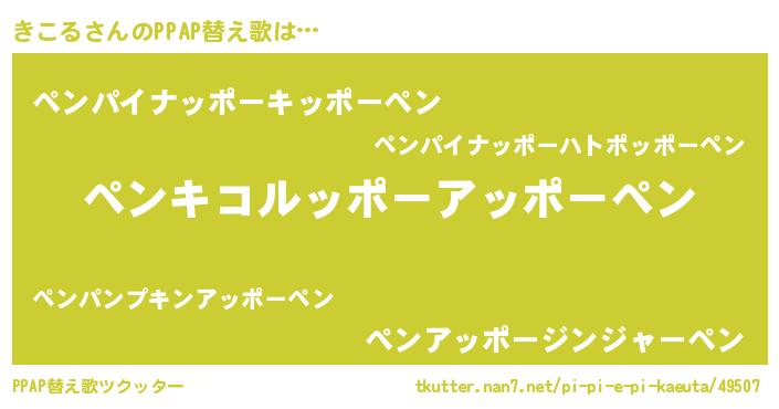 | ピコ太郎風あだ名 | 『キコ四郎』『ピコキ郎』『ピキ六郎』 |