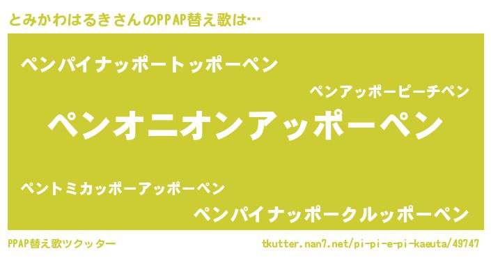 | ヘコむあだ名 | 『とみもー』『とみかわはるき(笑)』 |