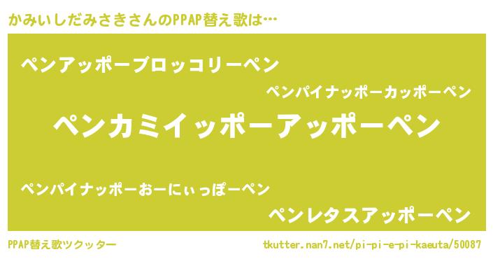 | 胡散臭い通販商品みたいなあだ名 | 『信頼と実績のサプリメント…その名も「かみいしだみさき」』 |