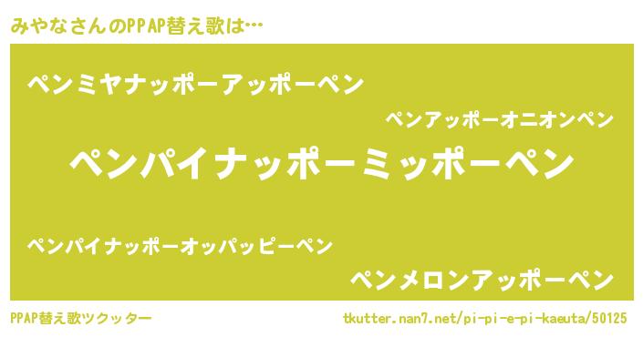 | ヘコむあだ名 | 『みやな(笑)』『みやを』『みやにー』 |