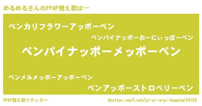 | 意味不明あだ名 | 『永久保存めるめる』『ペロリンめるめる』 |